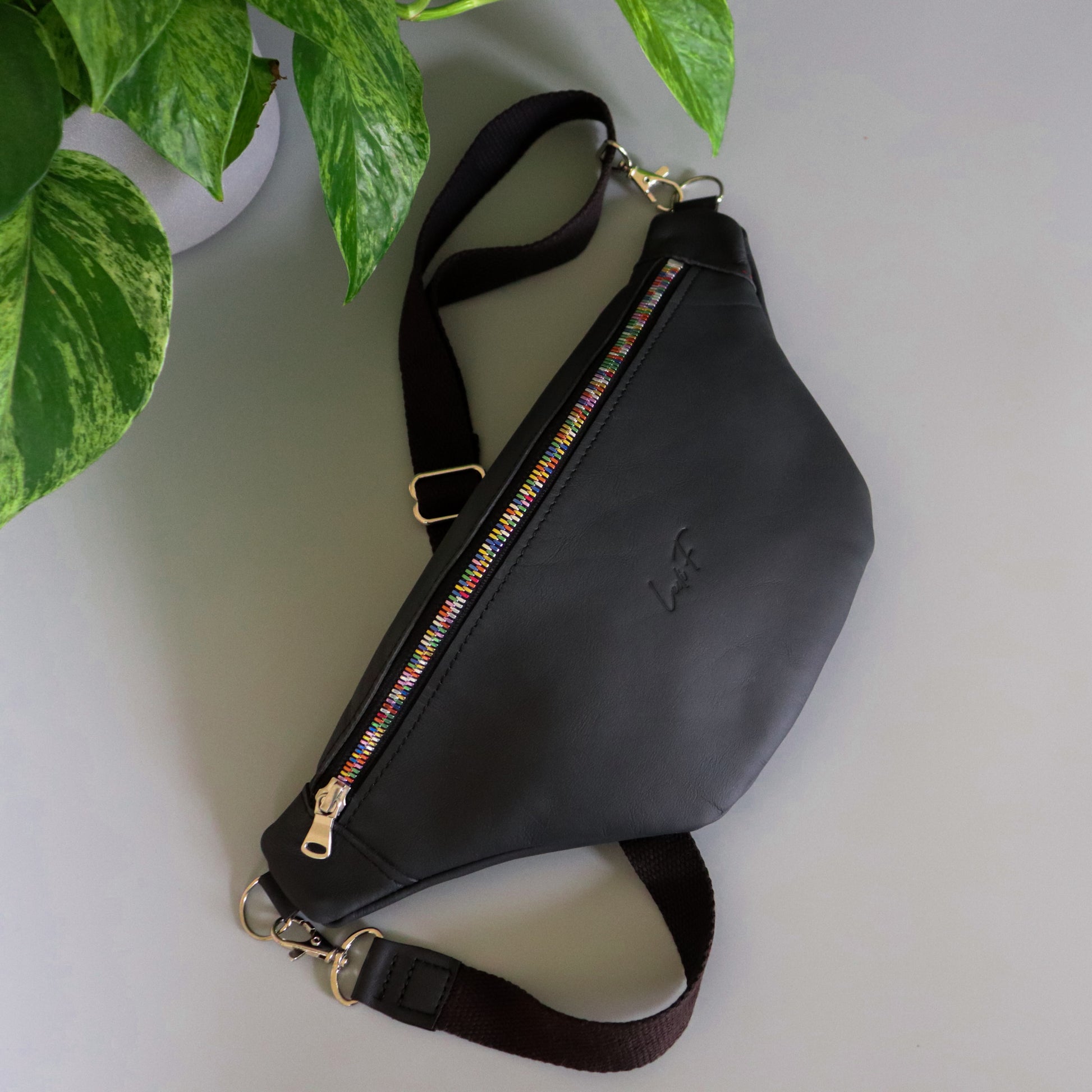 Lederbauchtasche - Feli mit buntem Reißverschluss