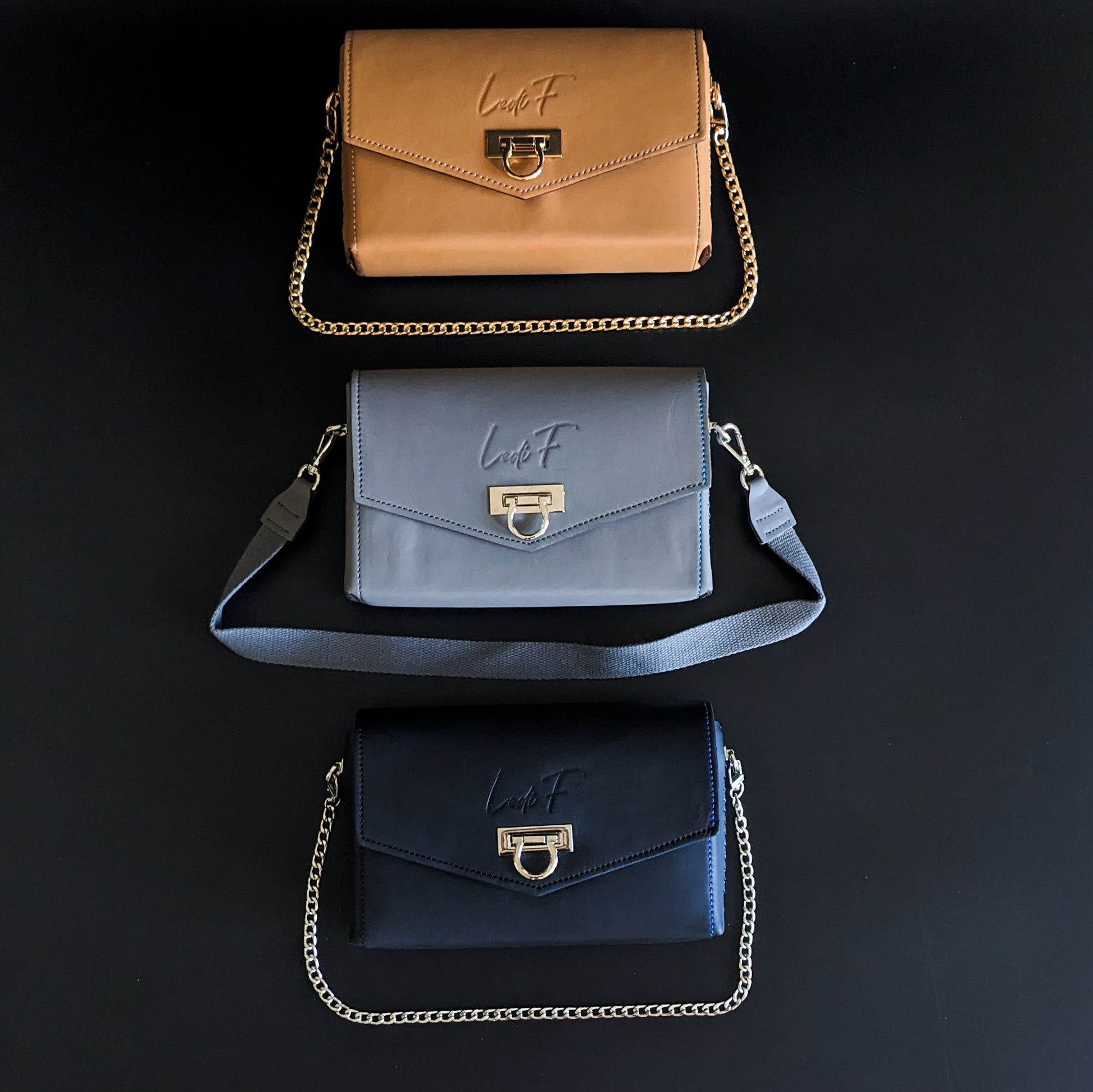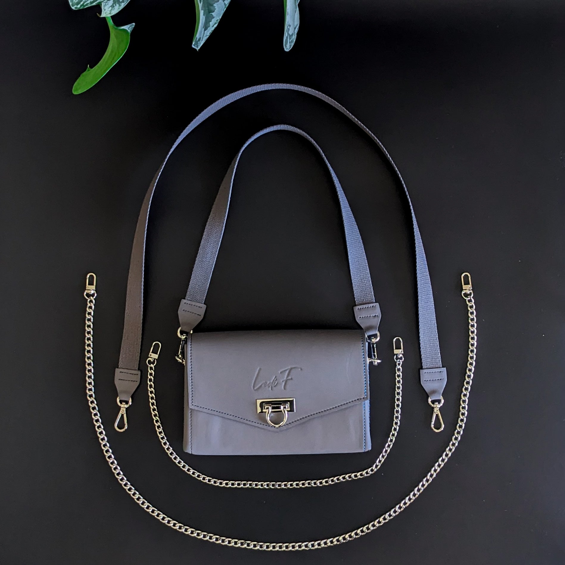 Dank der unterschiedlichen Tragemöglichkeiten bleibt die Tasche flexibel. Der breite Textilriemen sorgt für einen modernen, bequemen, aber auch legeren Look, während die elegante Metallkette das Outfit perfekt für besondere Anlässe abrundet. Alle Varianten lassen sich im Handumdrehen wechseln. Eine Trägervariante kannst du auswählen. Wenn du mehr, oder alle haben möchtest, findest du sie HIER.