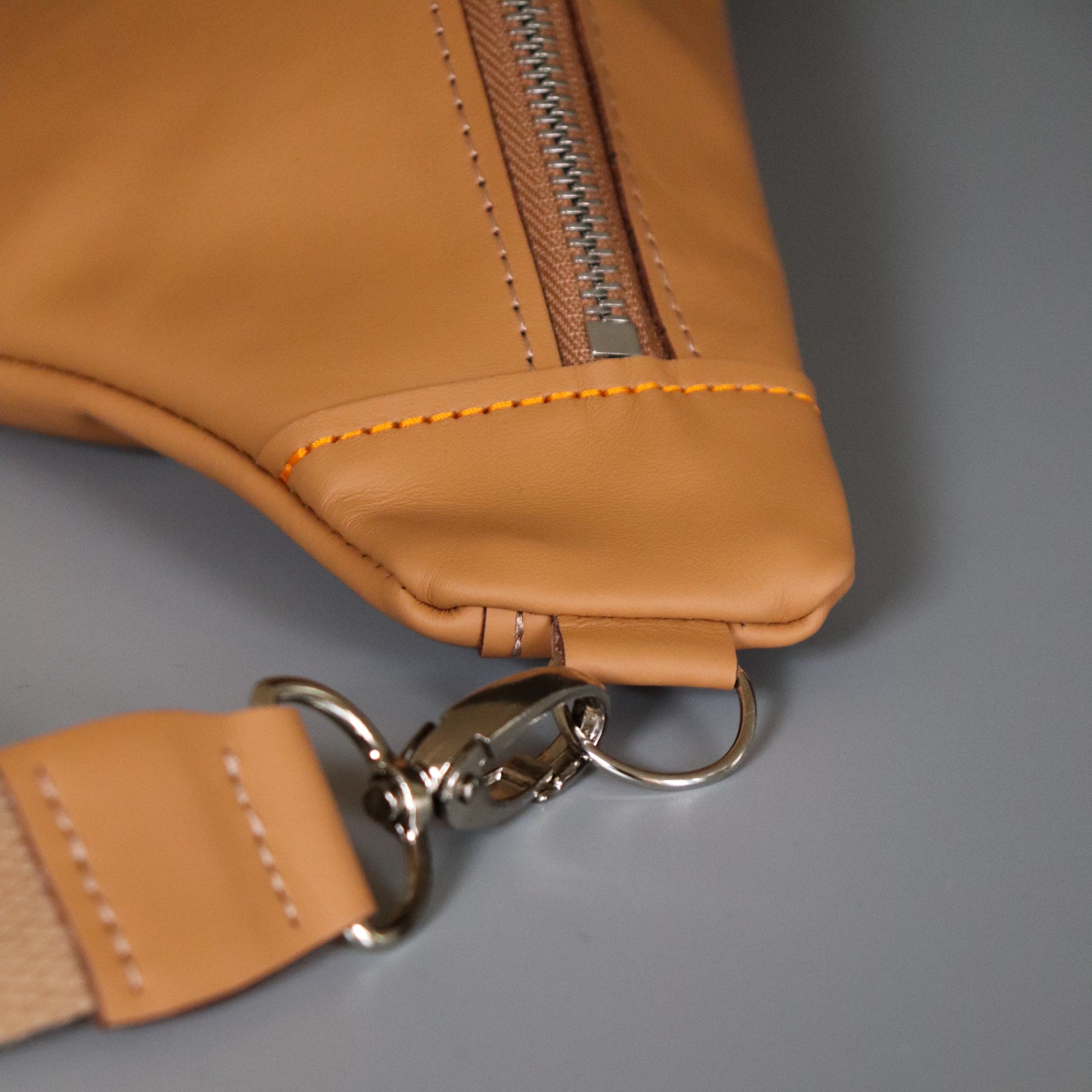 Die Bauchtasche „Feli“ begleitet dich, egal wohin es geht – in die Stadt, auf einen Spaziergang oder auf Reisen. Das große Innenfach bietet genügend Stauraum für all deine wichtigen Dinge wie Schlüssel, Handy, Mundschutz und Geldbörse. Auch das Ledi F Portemonnaie „Franzi“ und das Brillenetui „Finn“ passen optimal in die Tasche und sind zusammen ein echter Hingucker. Auf der Rückseite befindet sich ein weiteres kleines Fach, ideal für Karten oder deinen Reisepass. Durch den längenverstellbaren Gurt entscheidest du selbst, wie eng oder lässig du die Bauchtasche tragen willst. Das Gurtband gibt es passend zur Außenlederfarbe. Durch die zwei Karabiner kann das Gurtband jederzeit von der Tasche abgenommen oder ausgetauscht werden.