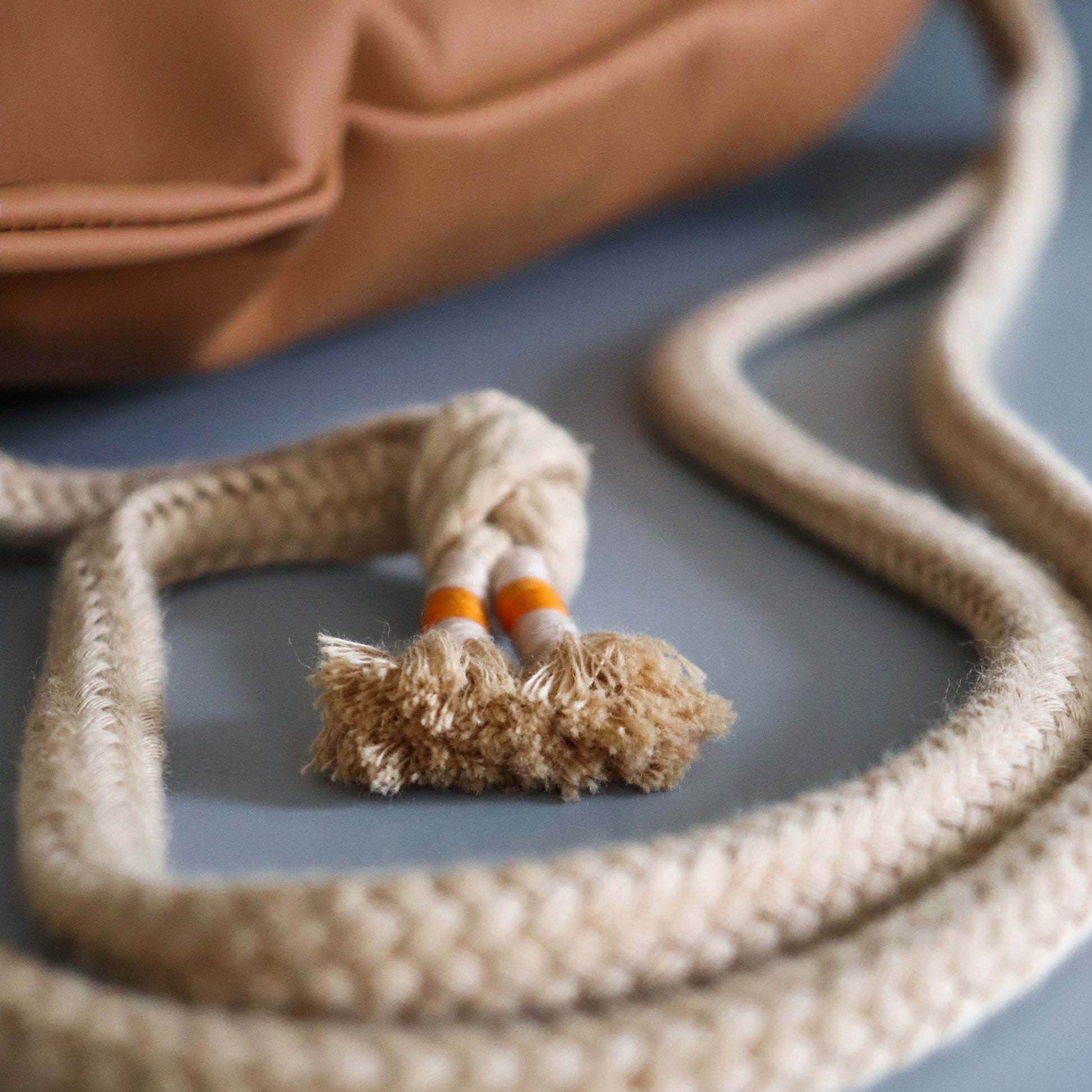 Wähle die Außenfarbe des Leders, die Farbe des Innenfutters sowie die bunte Garnfarbe* und kreiere so dein persönliches Einzelstück. Die Farbe der Kordeln richtet sich nach der Wahl deiner Außenlederfarbe (z.B. schwarzes Leder – schwarze Kordel). Am Ende der Kordeln wird deine farbige Wunschgarnfarbe nochmals aufgegriffen. Füge optional eine Prägung hinzu. Dein Wunschtext wird auf der Vorder- und/oder Rückseite mittig unter der farbigen Naht positioniert.